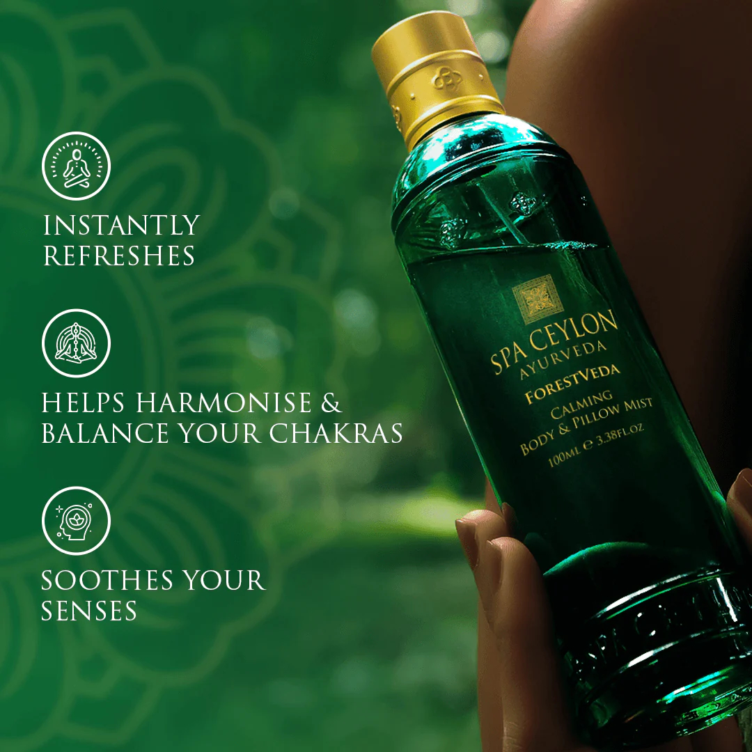 A unique formula combining internationally tested FOREST THERAPY technology with powerful Ayurveda WonderHerbs & precious essential oils. The synergistic blend helps take you back to the lush Rainforests of Ceylon, gently taking away stress, relieving fatigue & calming your mind, body & soul. FOREST THERAPY technology mimics biologically active ‘Plant Phytoncides’ in trees, helping to release healing & revitalising energies similar to that of Rainforest immersion, soothing your senses & nurturing overall wellbeing.