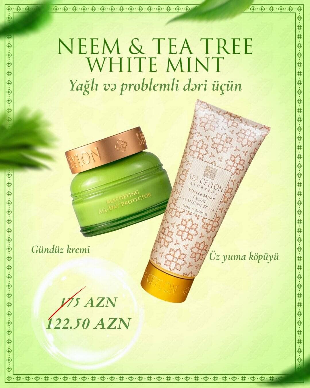 This clarifying two-step combo combines the White Mint Facial Cleansing Foam with the Neem & Tea Tree Mattifying All-Day Protector to purify, refresh, and keep your complexion shine-free throughout the day.