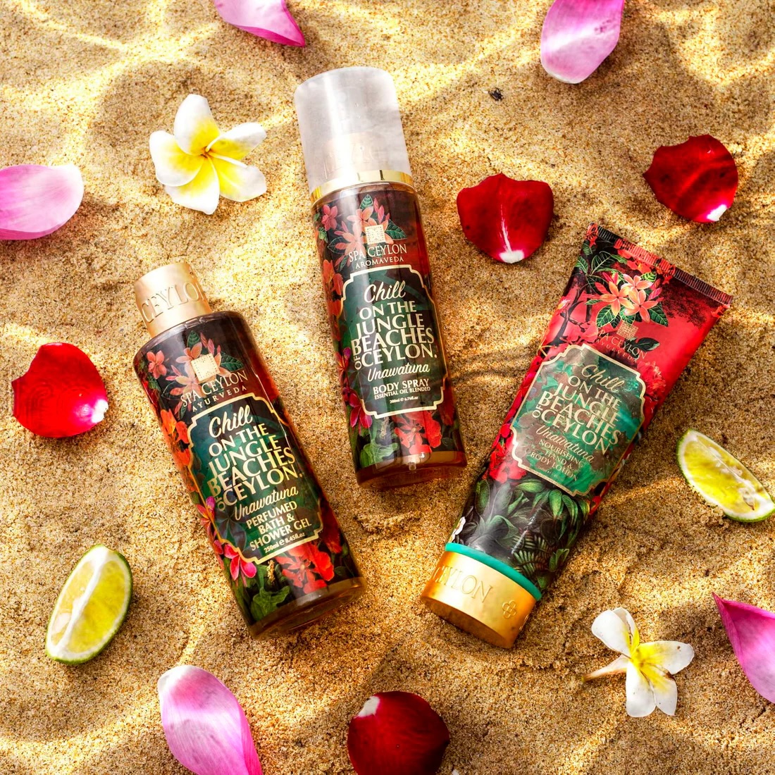Chill on the jungle beaches of Unawatuna with this exotic tropical fragrance, reminiscent of an island escape to the sun-kissed beaches of Ceylon. Infused with aromatic notes of Pink Lotus, Frangipani, Rose & Water Lily combined with pure essential oil of energising Ceylon Tangerine, to keep you fresh & fragrant all day long.